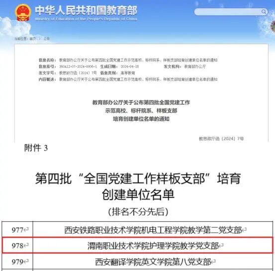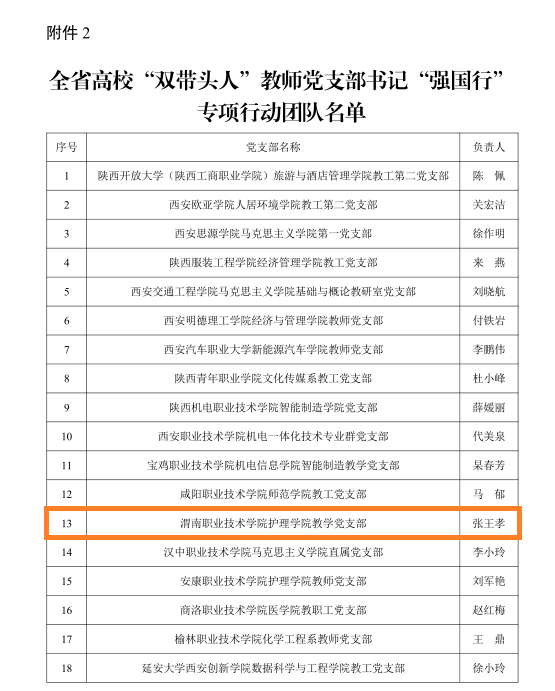 开展“新时代高校党建示范创建和质量创优”工作,获得全国党建工作样板支部1个,陕西高校党建工作样板支部3个,陕西高校党建工作标杆院系1个,全省高校团建标杆院系2个,陕西省五星级离退休干部党支部1个;实施“高校教师党支部书记双带头人培育工程”,获得全省高校“双带头人”教师党支部书记“强国行”专项行动团队1个;获得全省高校党员干部网络培训优秀组织单位,全省高校纪检监察机构工作优秀等次,“学习强国”陕西学习平台优秀供稿单位,渭南市“理论宣讲先进集体”;党委理论学习中心组获得渭南市“党委(党组)理论学习中心组学习规范化建设成效显著单位”。成立了马克思主义学院、美育中心,打造“星级堡垒党支部”,创建“党员示范岗”;共建大学生爱国主义教育和红色教育研学基地;开展理论宣讲,组织党务培训。录制思政金课14期,制作有声读物《习仲勋的故事》53期,编印“红色校史英模”学习资料1套,制作“校史中的红色故事”视频1部。