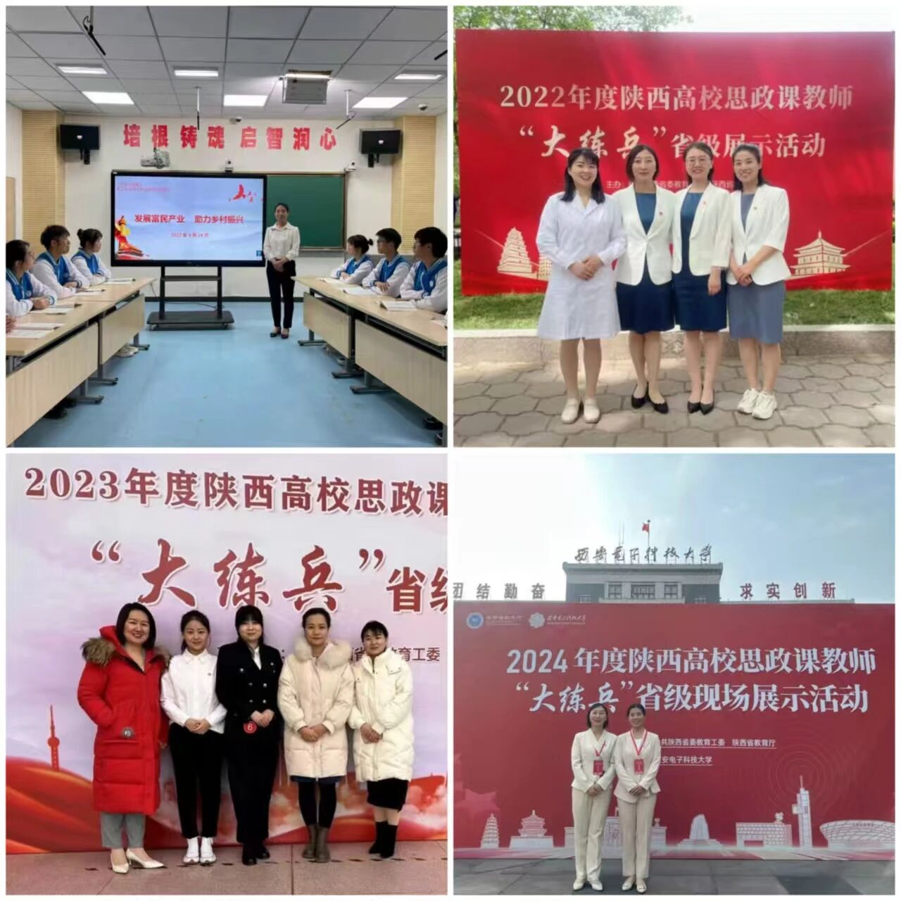 积极探索新时代“行走的思政课”、“场馆里的思政课”等思政课教学新模式,组织师生赴司马迁祠、习仲勋纪念馆等开展实践教学20余次,获批省级网络思政专项课题2项,获得省级思政教师“大练兵”“教学标兵”3人、“教学能手”8人次、一等奖1项、二等奖1项,获得陕西高职院校“精彩一课”“精品课堂”1项,获批省级在线开放课程1项,荣获省高职高专“秦马磨课会”二等奖2项,三等奖4项,1名教师晋级第四届全国思政课教学展示活动。