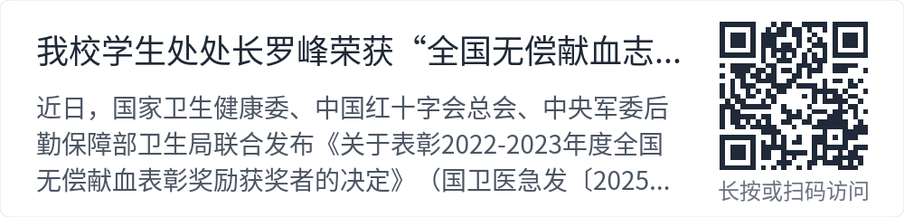 4.我校学生处处长罗峰荣获“全国无偿献血志愿服务奖”
