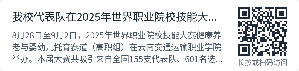 2.我校代表队在2025年世界职业院校技能大赛健康养老与婴幼儿托育赛道(高职组)中斩获铜奖