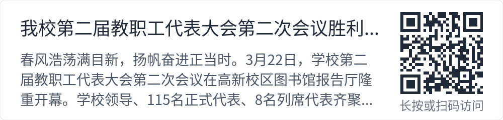 提升内部治理效能,夯实发展基础。顺利召开教代会,成功获评“陕西省绿色学校”。深入开展爱国卫生运动,提升后勤保障服务水平,校园育人环境更加优美和谐。