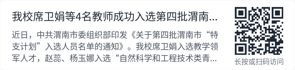 14.我校席卫娟等4名教师成功入选第四批渭南市“特支计划”人才项目