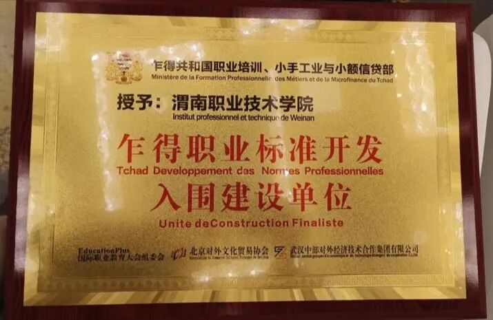 开发建设的中医学专业NTA3级《中医养生与护理3级》职业教育标准已被乍得等国家职业教育委员会审核认证,签发认证函,获得“乍得职业标准开发优秀建设单位”称号。
